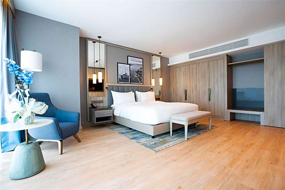 The spacious air-conditioned suite offers a flat-screen TV with streaming services, soundproof walls, a mini-bar, a tea and coffee maker as well as city views. The unit offers 1 bed.